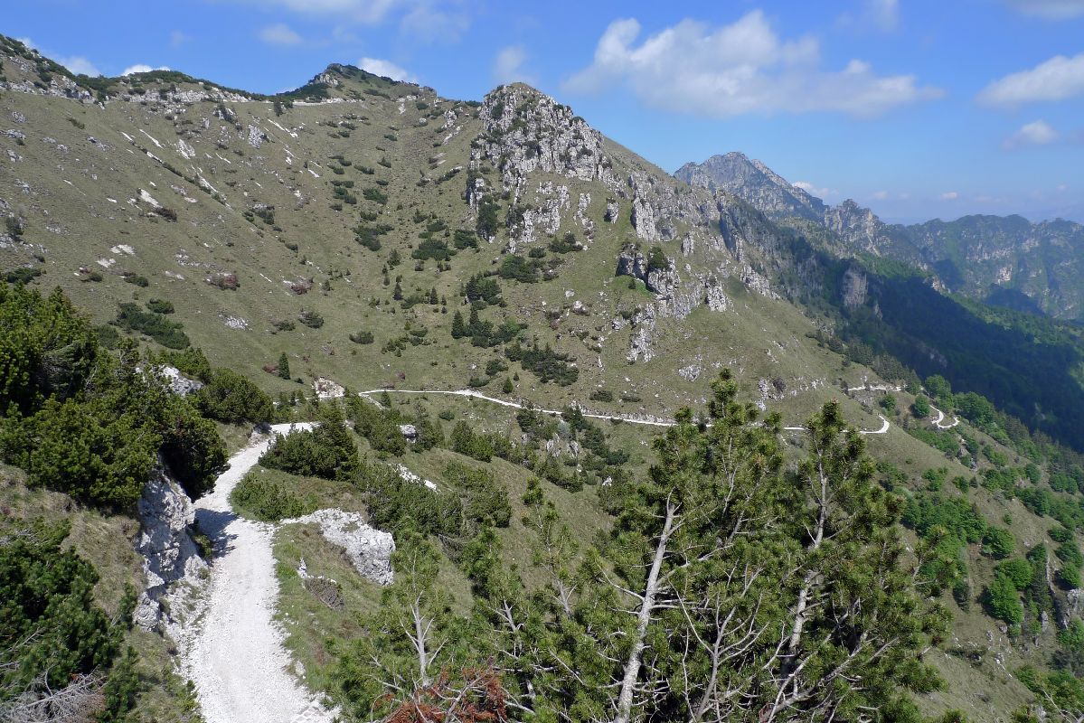 L’ambiente sempre più alpino ci carica di nuova energia e nonostante gli strappi micidiali su cementata siamo contenti e determinati. Durante la salita faccio anche la conoscenza di una bella vipera che si crogiola al sole. Il sibilo non è sicuramente un messaggio di benvenuto e vedo quindi di andarmene al più presto.