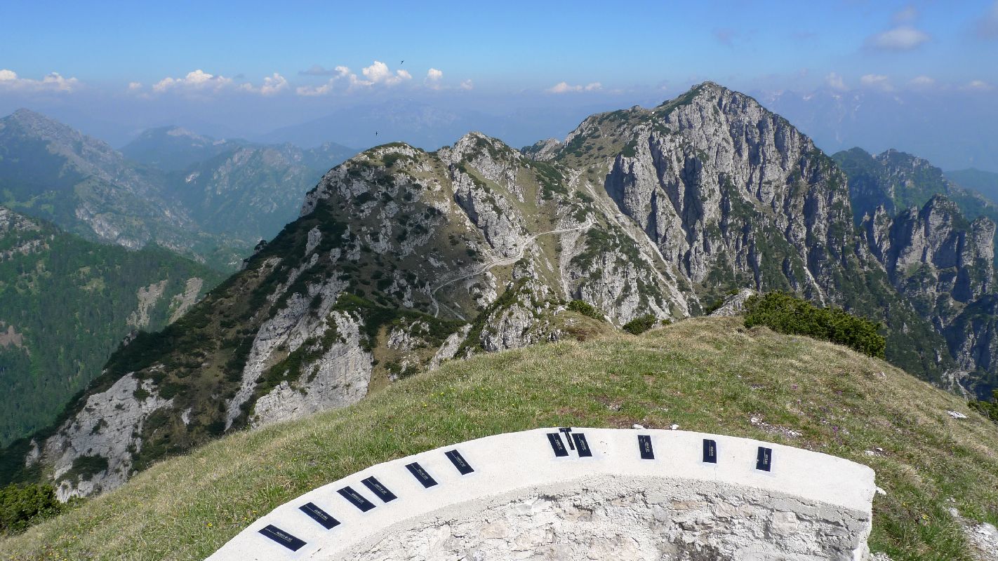 Proprio in vetta è presente una struttura circolare che indica tutte i monti che ci circondano, davvero una bella idea.