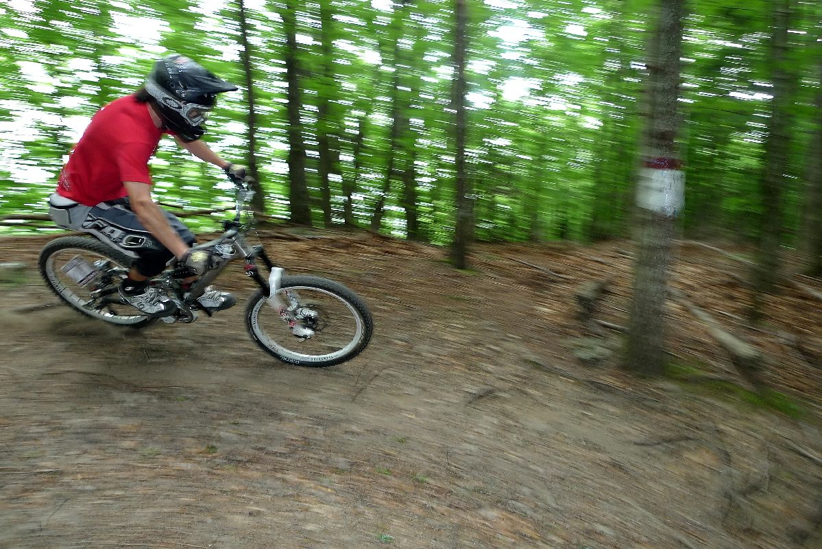 Manu raida ad una velocità folle e del pezzo più veloce in assoluto nella pineta si schianta sul sentiero evitando per un pelo un pino. Dalla nuvola che si alza e dalle urla di dolore penso al peggio e cerco di tenere fermo Manu che si dimena disperatamente… che caga! Minkia! Alla fine niente di grave anche se il dito rotto e varie escoriazioni lo terranno fermo per almeno due settimane.