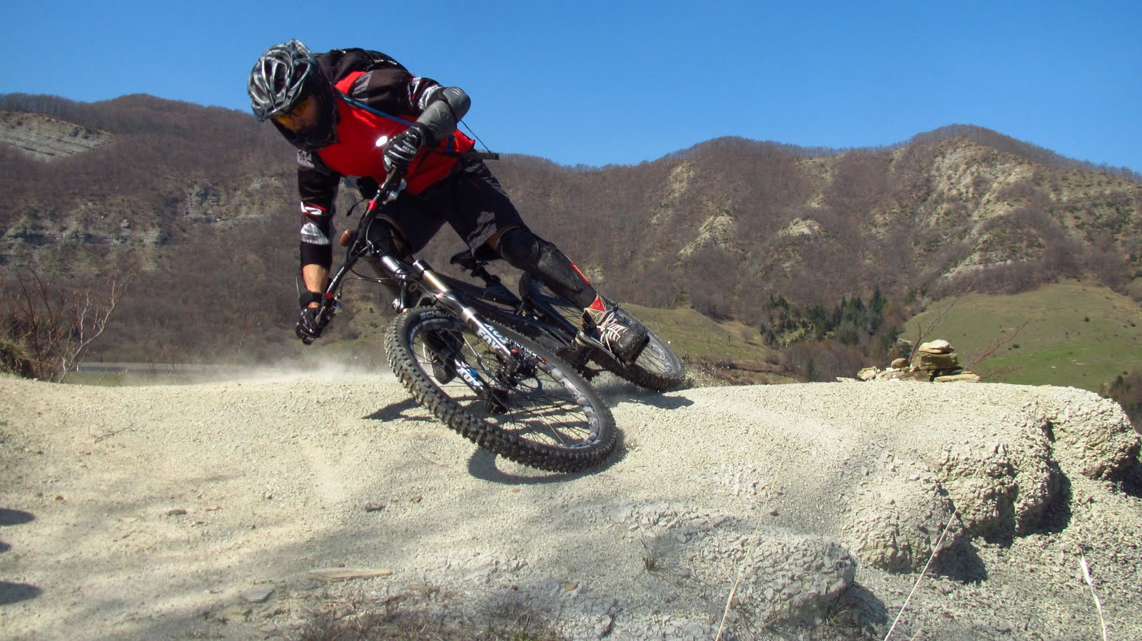 Qui troviamo due escursionisti un pò attempati che ci attaccano una pezza stratosferica. In qualche modo ci liberiamo dal gancio mortale e ci prepariamo alla discesa. Partiamo alla grande, il sentiero è decisamente stile “Romagna che incanta”, tutto da guidare e tecnico al punto giusto, semplicemente una libidine.