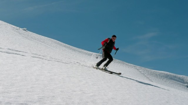 Intanto Albi approfitta della sosta per studiare la cartina, ma che guida professionale che è? Ci prepariamo per la discesa, la neve è perfettaaaaaa, trasformata al punto giusto. Disegnano linee perfette, o quasi, ma quanto è bello lo scialpinismo? Come dice Stefano: uno sport meraviglioso nell’ambiente più bello dello mondo!