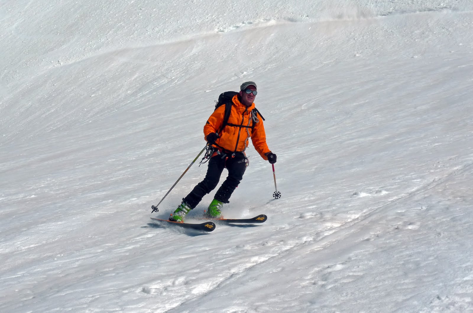 Adesso sì che si ragiona, complice la neve trasformata a dovere e le pendenze umane, il divertimento è assicurato. L’unico pensiero che aleggia nel mio cervellino è rivolto ai possibili crepacci.