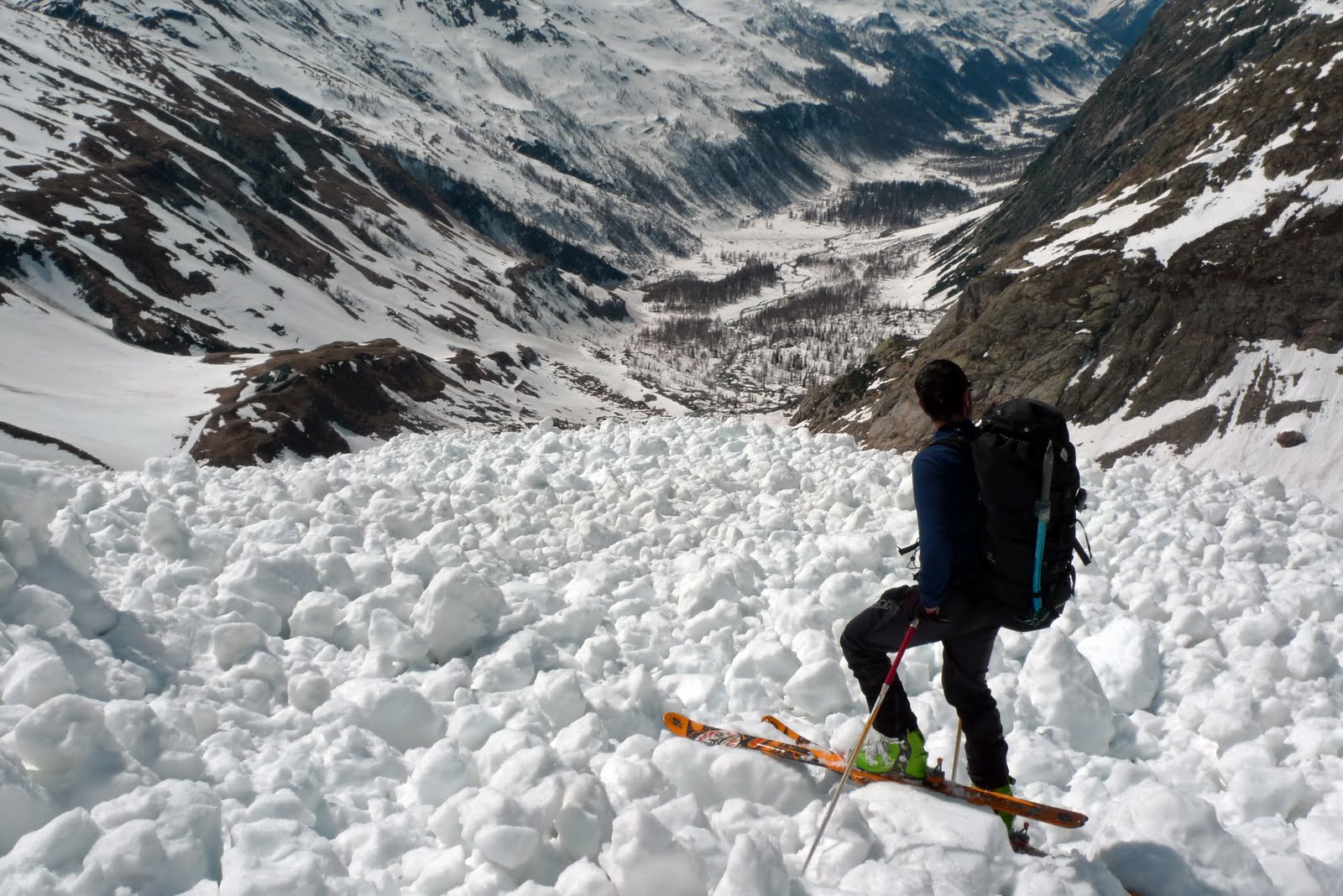 Dopo un rapido saluto ai nostri tre compagni d’avventura, io e Albi ci dirigiamo verso l’ultima parte di discesa. Il caldo tropicale e il sole hanno già mollato la neve.