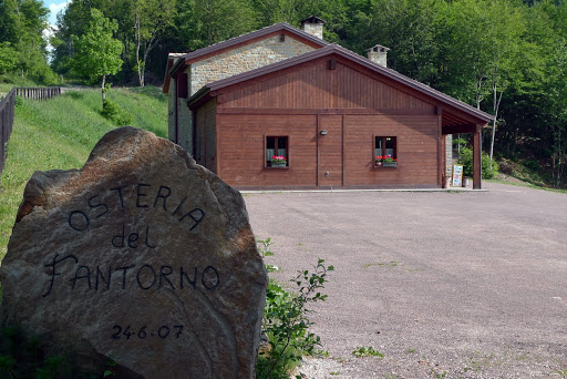 Il tempo delle discese ormai è finito, adesso comincia la dura salita che ci porterà al paese di Monghidoro. A parte qualche tratto di bici a spinta il sentiero è tutto ciclabile. Siamo circondati da colline e boschi, le numerose pale eoliche sulle creste ci osservano dall’alto. Intanto la fame comincia a farsi sentire. Decidiamo di fermarci in un bar a Monghidoro per una velocissima sosta. L’ultimo tratto di sterrata che porta alla nostra meta per oggi, l’osteria del Fantorno, ci sembra infinito.
