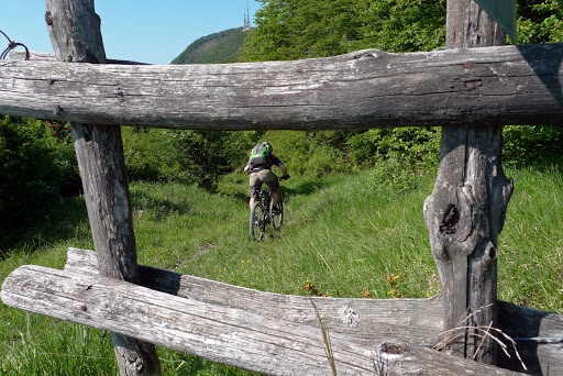 Scappiamo più velocemente possibile dalla città e ci addentriamo nel famoso parco Talon. Tra continui sali e scendi in leggera salita ci addentriamo nelle prime colline bolognesi. La temperatura è calda per il periodo senza però essere fastidiosa. Raggiungiamo la zona di Sasso Marconi. Qui giochiamo quasi in casa, i sentieri di Monte Mario e Adone sono un classico per noi. Percorriamo i sentieri che portano ai piedi del Monte Adone. La voglia di spararsi la discesa che parte dalla vetta è tanta, ma purtroppo i chilometri da fare sono tanti e quindi l’animo freeride dovrà rimanere sopito per un pò.