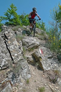 Affrontiamo l’unico tratto d’asfalto della giornata fino al paese di Monzuno. Non ci infastidisce più di tanto visto anche il poco traffico. Da qui, dopo una rampa iniziale da fare a spinta, si scende su divertente singletrack fino al torrente Savena.