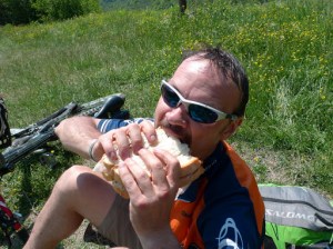 Siamo belli cotti sia per i tratti a spinta sia per il caldo della giornata. Per fortuna l’ultimo tratto in leggera discesa ci porta velocemente alla nostra meta: il camping Mugello Verde a San Piero a Sieve. Non c’è niente di meglio di una birra ghiacciata stravaccati ai bordi di una piscina. Kevin però mi sembra stravolto. Si vede che la bici a spinta l’ha duramente provato.