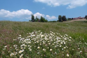 Riprendiamo la marcia in discesa. Lasciati alle nostre spalle i boschi entriamo nella splendida piana del Mugello.