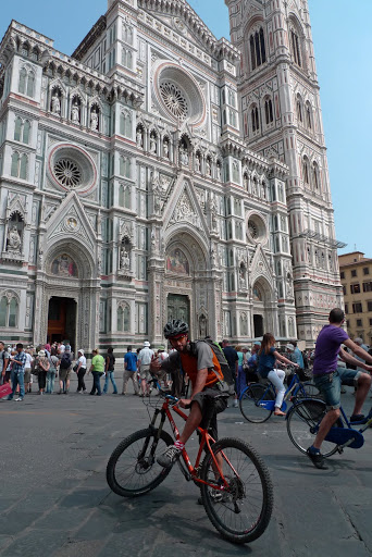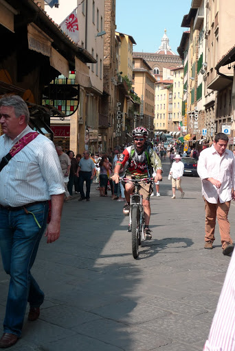 Siamo in anticipo per il treno che ci riporterà a casa. Abbiamo quindi tempo per un tour turistico. Sfrecciare le vie del centro, circondati da monumenti e chiese, passare su ponte Vecchio, tutto in mtb è una vera soddisfazione.
