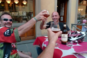 Intanto ci contatta il grande Tomb che incontriamo in un bar di fronte a palazzo Pitti. Incredibile, hanno la birra Moretti Grand Cru. Sarà una coincidenza… nooooo è il destinoooo!!!