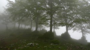 Il giro che ho in mente è una variante di quello fatto in estate con una piccola aggiunta di dislivello e con la scalata al Monte Autore. La partenza è dal paese di Subiaco. Il cielo è ancora sereno, ma ho la strana sensazione che non saremo così fortunati. La prima parte del percorso ci porta in quota su strada asfaltata. Le pendenze non sono mai proibitive e in poco tempo riusciamo a raggiungere Monte Livata. Da qui in poi ci lasciamo la civiltà alle spalle e ci addentriamo nel parco dei Simbruini. Come previsto comincia a piovere. Da programma! Tra prati adibiti a pascolo e bellissime faggete arriviamo alla base del Monte Autore.