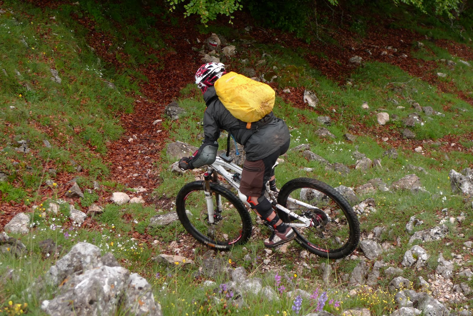 Messe le protezioni ci lanciamo nella lunga e viscidissima discesa che ci condurrà al suggestivo pianoro chiamato Campo Secco.