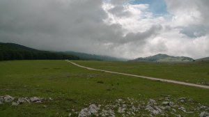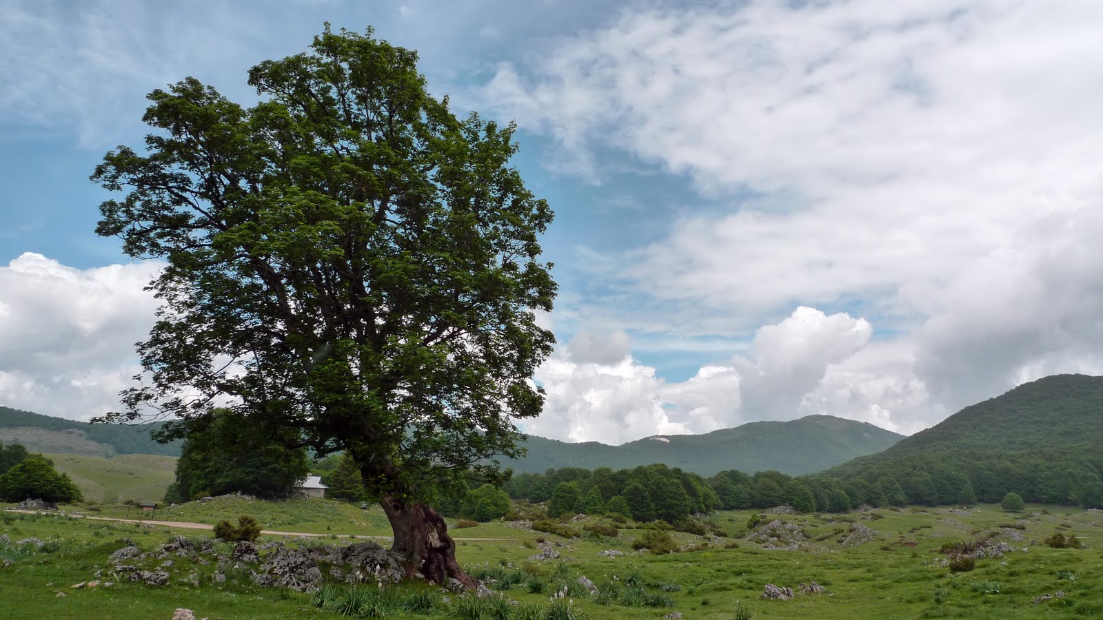 Attraversiamo il meraviglioso altopiano dei Simbruini. Il posto è unico, i prati con l’erba perfettamente curata dal pascolo dei cavalli selvatici si alternano a boschi di faggi secolari. Ogni volta che vengo mi emoziono nel vedere questo paesaggio completamente fuori dall’ordinario.