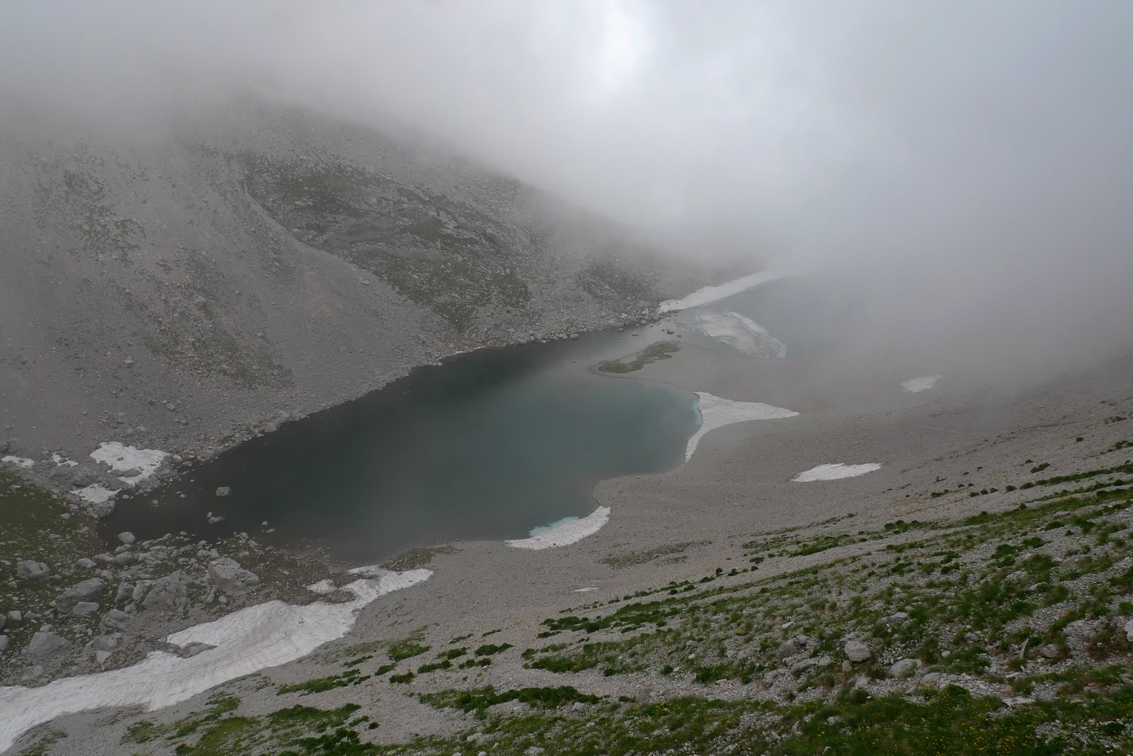 Miracolosamente le nebbie ci concedono la vista del Lago di Pilato: