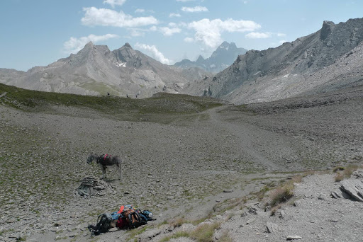 Qui facciamo un inaspettato incontro con un asino che ci guarda con la grande intelligenza tipica della sua specie e in realtà anche di molti esseri umani. Quest’instancabile animale è utilizzato spesso dai sempre più avanti trekker francesi per il trasporto dell’attrezzatura da campeggio.
