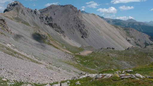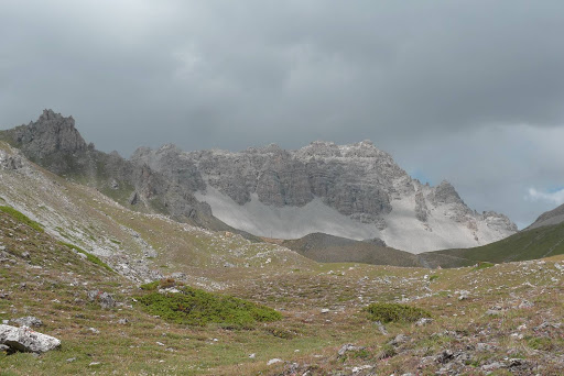 Purtroppo dobbiamo riprendere il cammino, siamo ancora lontani da Saint Veran e la salita non è ancora finita. Siamo al Col Fromage in un lampo, siamo alla resa dei conti, l’ultima salita si para davanti a noi separandoci dalla valle di Saint Veran. Seguiamo il sentiero in salita leggera che con un lungo traverso affianca la montagna. Improvvisamente la traccia si inerpica cattiva sulla nostra sinistra costringendoci a qualche tratto a spinta. Ormai belli cotti a puntino concludiamo anche quest’ultima fatica, il Col des Estronques è conquistato. Con le gambe dure come pezzi di legno e il fiato corto siamo giunti quasi al termine del nostro viaggio.