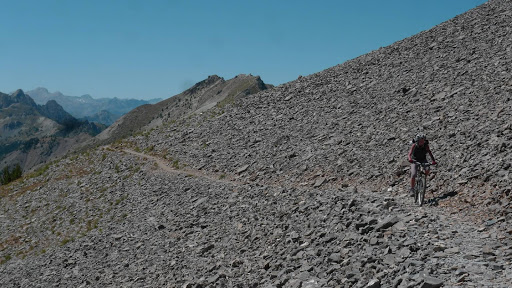Inoltre non ci rimane che una lunga discesa fino al punto tappa della giornata. Anche questo sentiero è perfetto per le bici, il Queyras è proprio il paradiso per le nostre amate compagne. Incrociamo improvvisamente l’asfalto presso la Casse Deserte, un punto panoramico dove ammirare incredibili pendii detritici simili a montagne innevate.