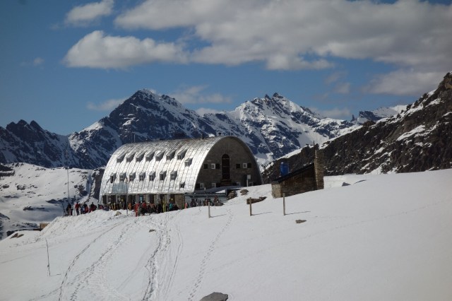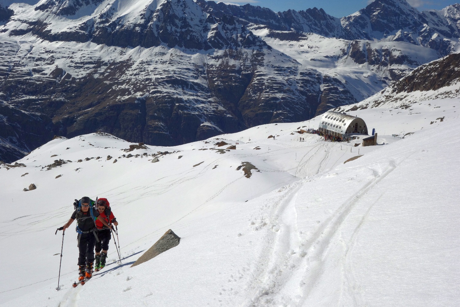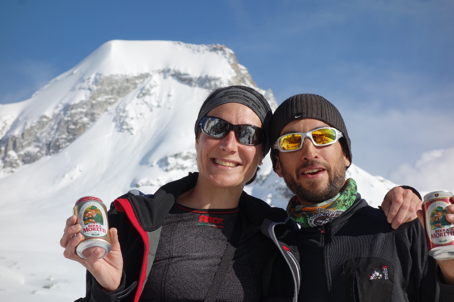 Fortunatamente una volta spellato scendiamo velocemente su ottima neve nonostante l’ora tarda fino a raggiungere il gruppo rimasto al rifugio.
