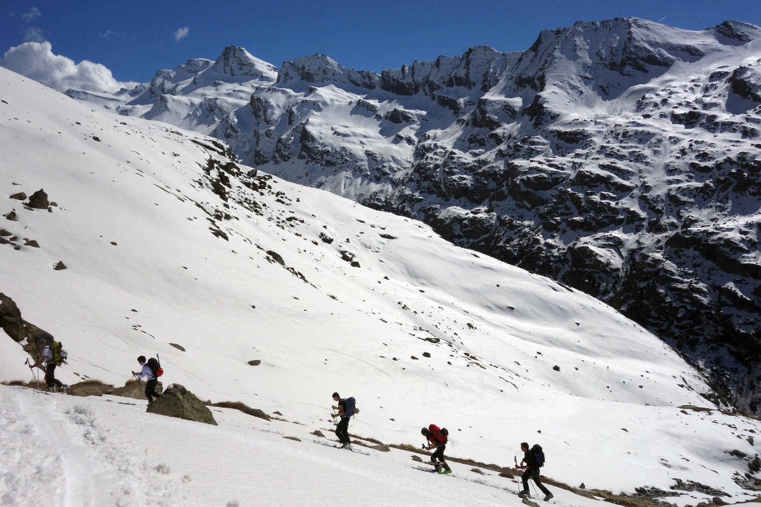 Sono consapevole che le sole parole di questo post non potranno certamente dare al lettore un’idea adeguata di tutte le emozioni provate nonchè subite in questa nuova avventura. Nonostante ciò sono confortato dal fatto che le foto scattate mi daranno una preziosa mano nel difficile compito che la mia narrazione si prefigge. Ad essere sinceri il Gran Paradiso, o più semplicemente il Grampa, è già stata una meta del mio vagabondare…. vedi qui http://mftt-anny.blogspot.it/2010/08/il-giro-del-gran-paradiso-in-mtb.html. In quel caso il mezzo era diverso, ma le emozioni che mi hanno fatto provare questi posti incantevoli mi hanno dato la spinta decisiva per lanciarmi in questa avventura. Visto che in mtb ho girato attorno al gruppo montuoso del Gran Paradiso ammirandolo sempre dal basso verso l’alto, non potevo certo lasciarmi scappare l’opportunità di poter mettere i piedini, o meglio gli sci, sulla vetta più alta. Possiamo quindi tranquillamente ringraziare il gruppo CAI di Reggio per aver dato a me e alla Sammy la possibilità di salire su questo unico 4000 completamente in territorio italiano: il Gran Paradiso.