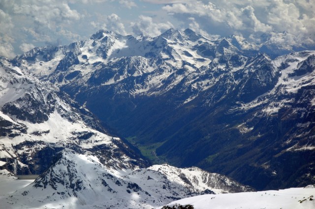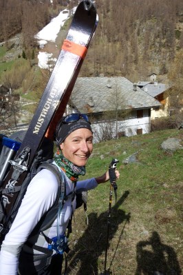 Sabato mattina, come per magia ci ritroviamo a Staffal, una frazione che si trova alla fine della meravigliosa valle di Gressoney in val d’Aosta. Siamo in cinque: io, la Sammy, Simone, Giorgio e Michele. Da qui parte la nostra avventura, dalla già ragguardevole quota di 2000 metri dovremo raggiungere il rifugio Mantova a 3400 e poi il giorno successivo Capanna Margherita all’incredibile altezza di 4550 metri. Mentre scarichiamo l’attrezzatura vediamo l’elicottero che trasporta gli sciatori fino al Rifugio in meno di cinque minuti di volo.