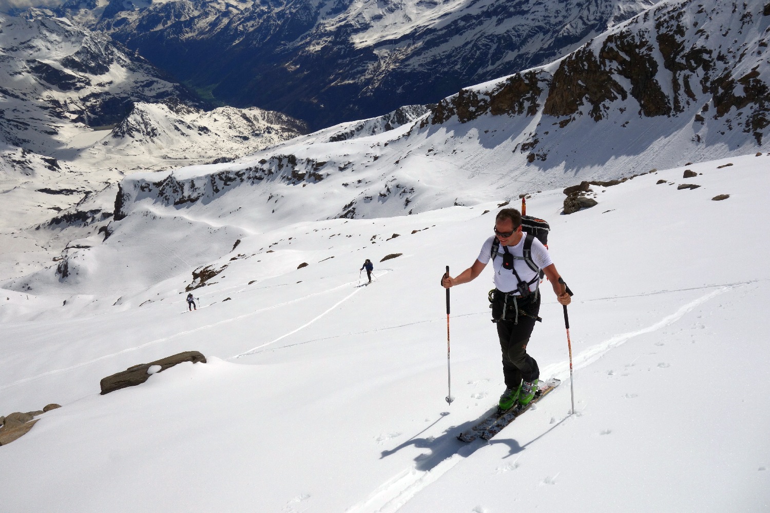 Ma tutto torna alla normalità o quasi, infatti non passano neanche un paio d’ore da quest’incredibile proposta che mi arriva un altro messaggio. Anche questo abbastanza strambo visto il precedente: “ma perchè non andiamo su Rosa questo we? Me l’ha proposto Simone”. Eccoci… accetto senza esitazione, non mi sfiora neanche per un attimo il pensiero dell’assurdità della cosa. Il fatto di non essere al 100% fisicamente non è altro che l’occasione per scalare il Monte Rosa con gli sci! Semplicemente assurdo, ma stupendamente vero!