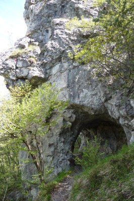 La temperatura non è poi così fredda e ben presto ci spogliamo accalorati dalla faticosa salita. Il difficile non è tanto la fatica per le pendenze ma è destreggiarsi tra l’impulso irresistibile di guardarsi attorno e la necessità altrettanto indispensabile di mantenersi in equilibrio. Questo strettissimo budellino è stato strappato dalla montagna con grande dispendio di forze quasi certamente durante il conflitto del 15/18.