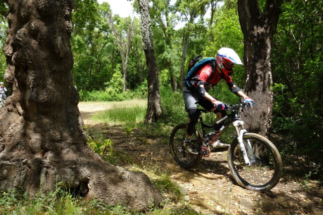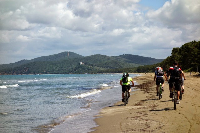 Che voglia di mare… sole… caldo… ma soprattutto e come sempre voglia di mtb!! Allora come non prendere l’occasione al volo offerta dal mitiko Stex. Quando mi propone di andare a Punta Ala con i suoi amici Umbri non resisto e accetto senza discutere. Una motivazione in più per rivedere il grande Paolone e Passolento, non si discute, si parte. La Sammy mi asseconda come sempre anche se la spalla malridotta non gli consente di andare in mtb con noi. Non si scoraggia, anzi la possibilità di farsi delle lunghe camminate lungo la spiaggia l’attira. Ci incontriamo tutti sabato mattina nella stupenda casa di Passolento a Punta Ala, siamo,oltre il padrone di casa e la sua famiglia, io e la Sammy, Stex, Paolone, Cristina, Bitter e Francesco. Ci lasciamo guidare dal local Passolento lungo le infinite possibilità che può offrire quest’incantevole costa toscana. Siamo letteralmente frastornati da tutti le varianti che ci propone, una più bella dell’altra. Tra boschi solitari di piante da sughero, sentieri da urlo, la vista del maree finalmente il primo caldo estivo ci godiamo un weekend di semplice divertimento.