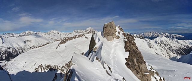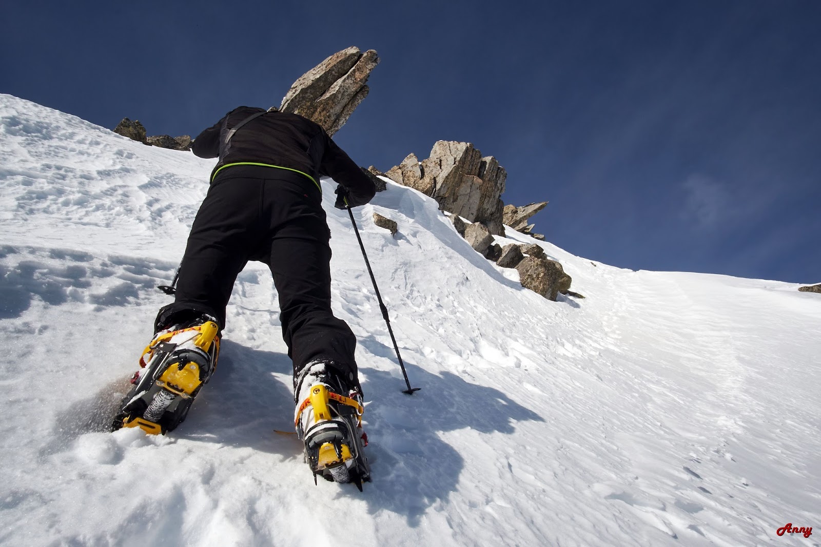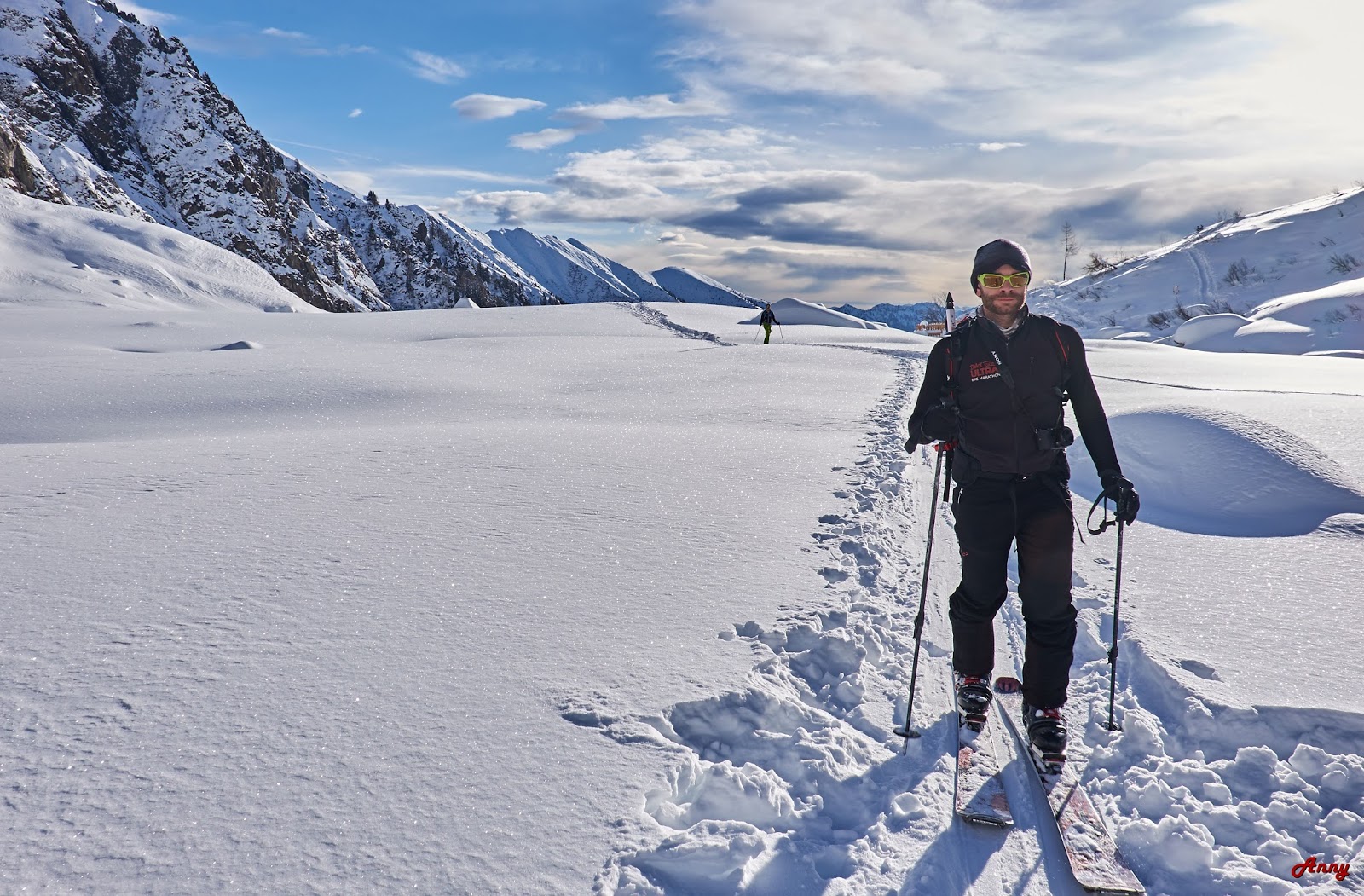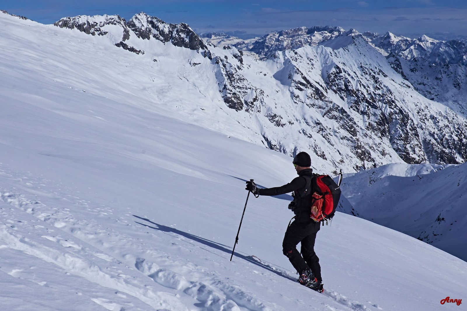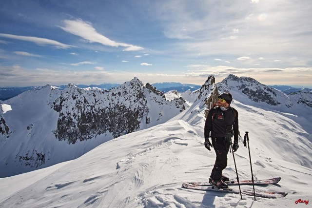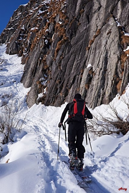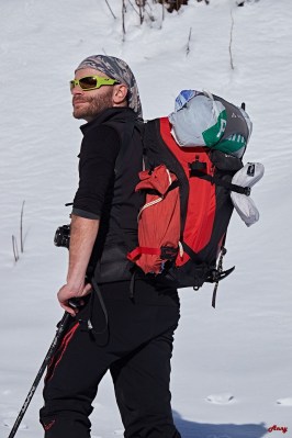 Siamo fortunati, solo cinque sciatori prima di noi hanno percorso questo itinerario. La neve è una goduria, ci ripaga di tutte le fatiche affrontate per raggiungere la vetta. La scimmia mi è saltata addosso… voglia di scialpinismoooo a milleeeee!!