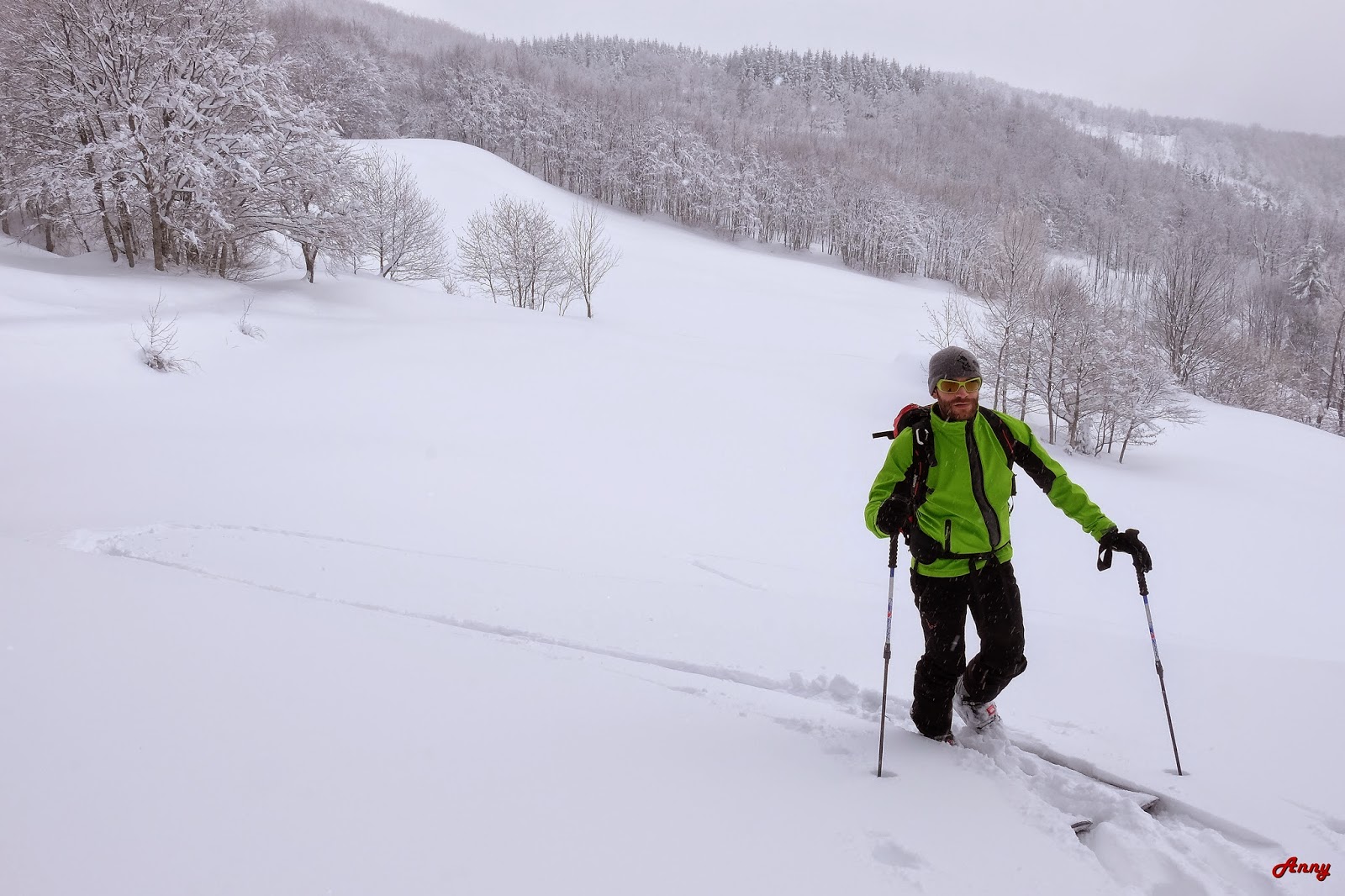 Come sempre una giornata strepitosa con metri di neve e boschetti fatatati, solo in parte rovinata dalla presenza di un gruppo di motoslitte che hanno arato senza pietà tutta la ex pista del Lupo.