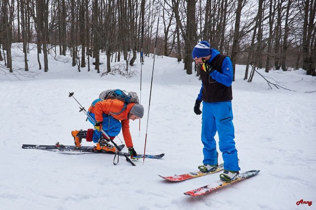 Tutti e tre i gruppi arrivano a destinazione, la capanna di Vallestrina, senza intoppi con gran soddisfazione dei istruttori. La neve intanto ha accumulato una ventina di centimetri che, considerando il rialzo termico e l’attività eolica, ha reso pericolosi tutti i pendii a nord con più di 30/35 gradi. Rinunciamo quindi al programma originale che ci avrebbe portato sul Piella e ripieghiamo con un percorso più sicuro sul monte Mongiardonda.