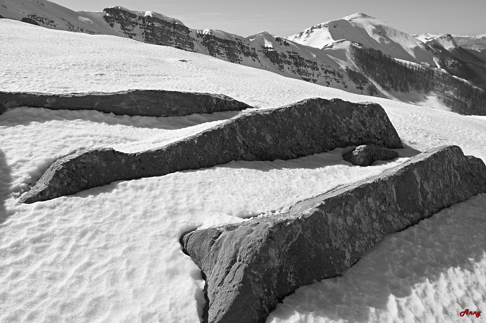 Sabato io e la Sammy partiamo con l’intensione di arrivare al Libro Aperto da Bellagamba, ma appena arrivati alla partenza le spirali di neve ghiacciata trasportata dal vento ci fatto subito desistere. Non siamo scesci neanche dal furgone, meglio scegliere un percorso un pelino più riparato. Ripieghiamo quindi sulla zona del Lago Santo.