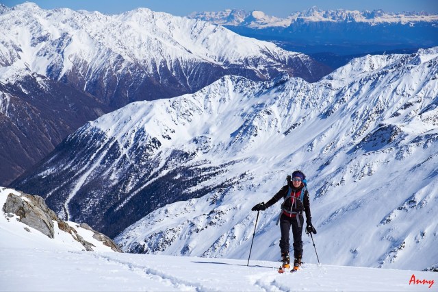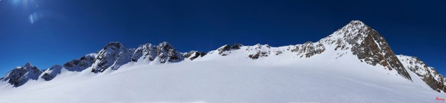 Il panorama è fantastico: siamo circondati da vette di oltre 3000 metri e il cielo è limpido.