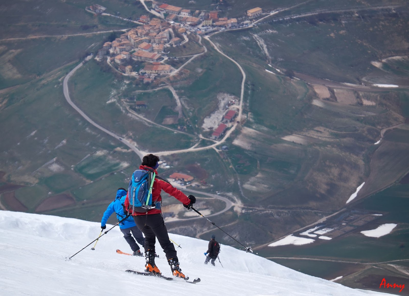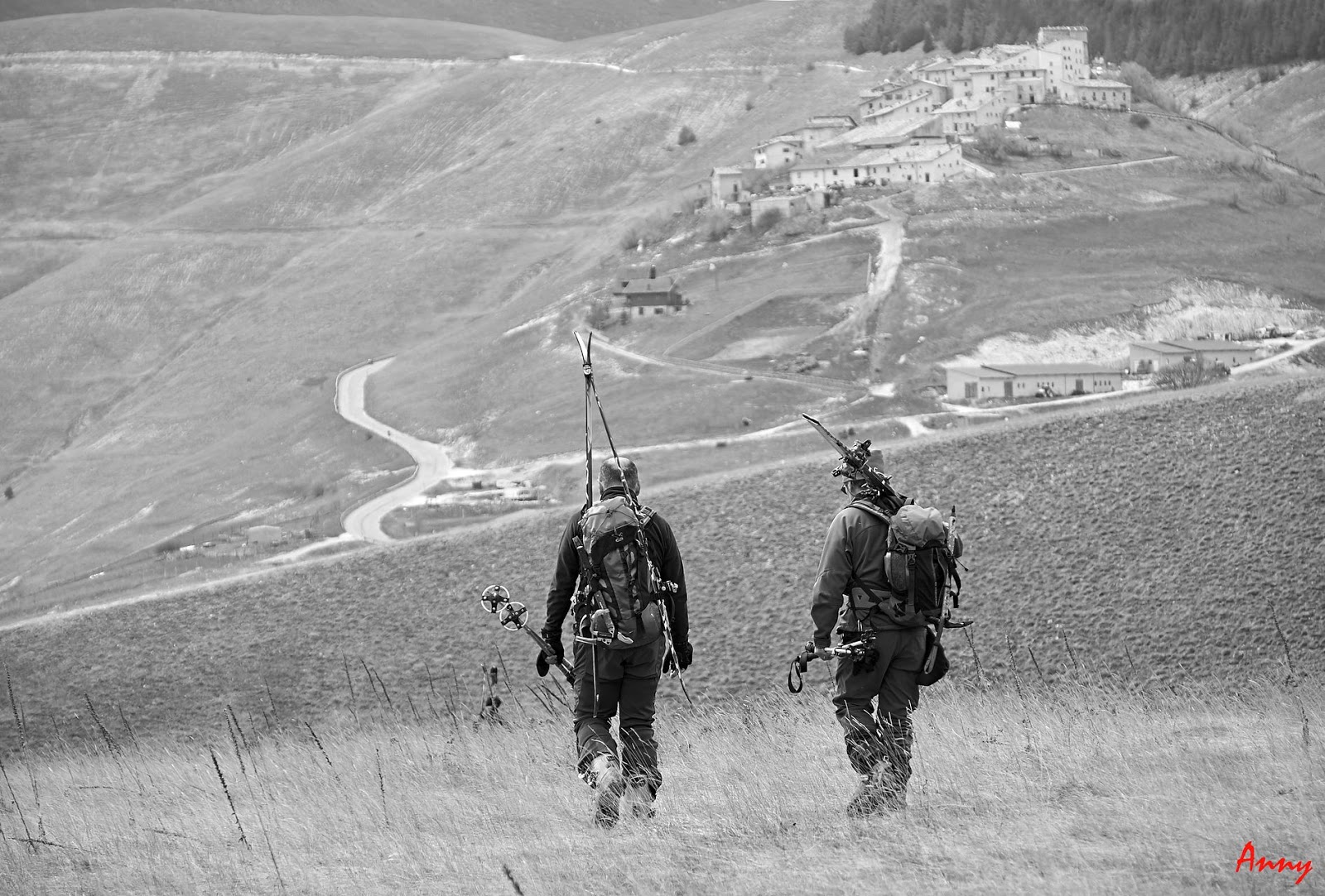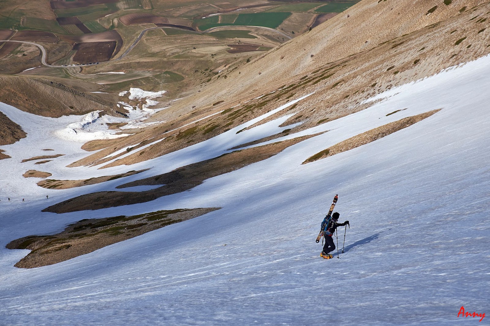Arrivati giù non ci resta che rimetterci gli sci in spalla per attraversare i campi che prima vedevamo dall’alto per raggiungere l’auto di Michele che ci darà uno strappo fino a riprendere la nostra.