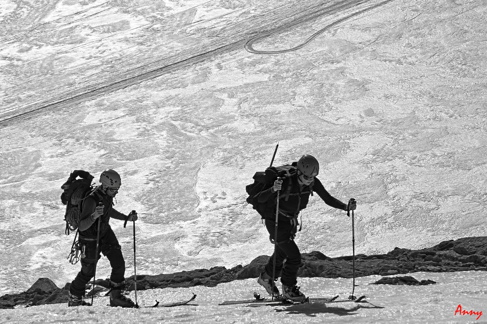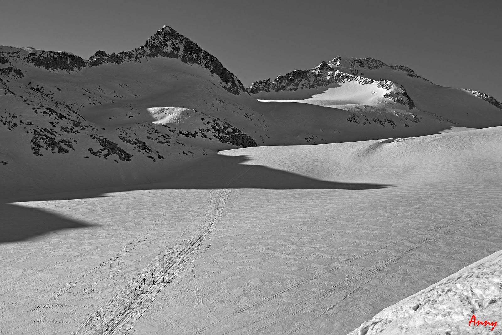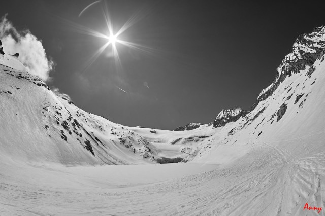 La lunga, lunghissima discesa lungo il ghiacciao del Pisgana: