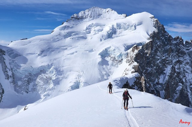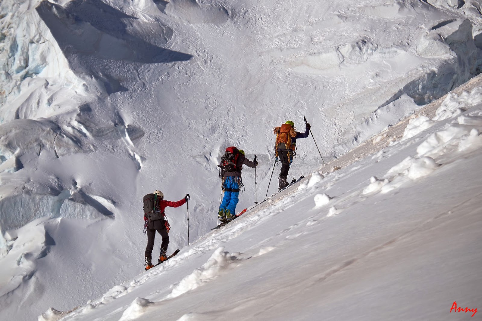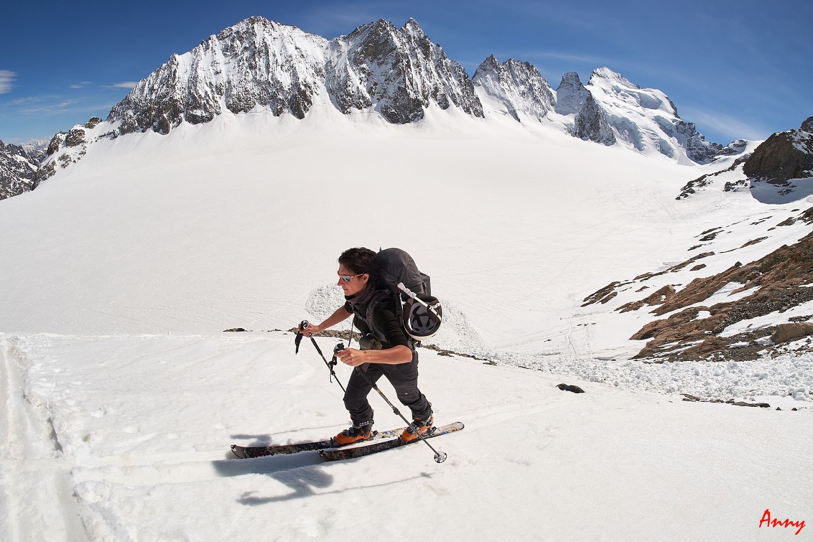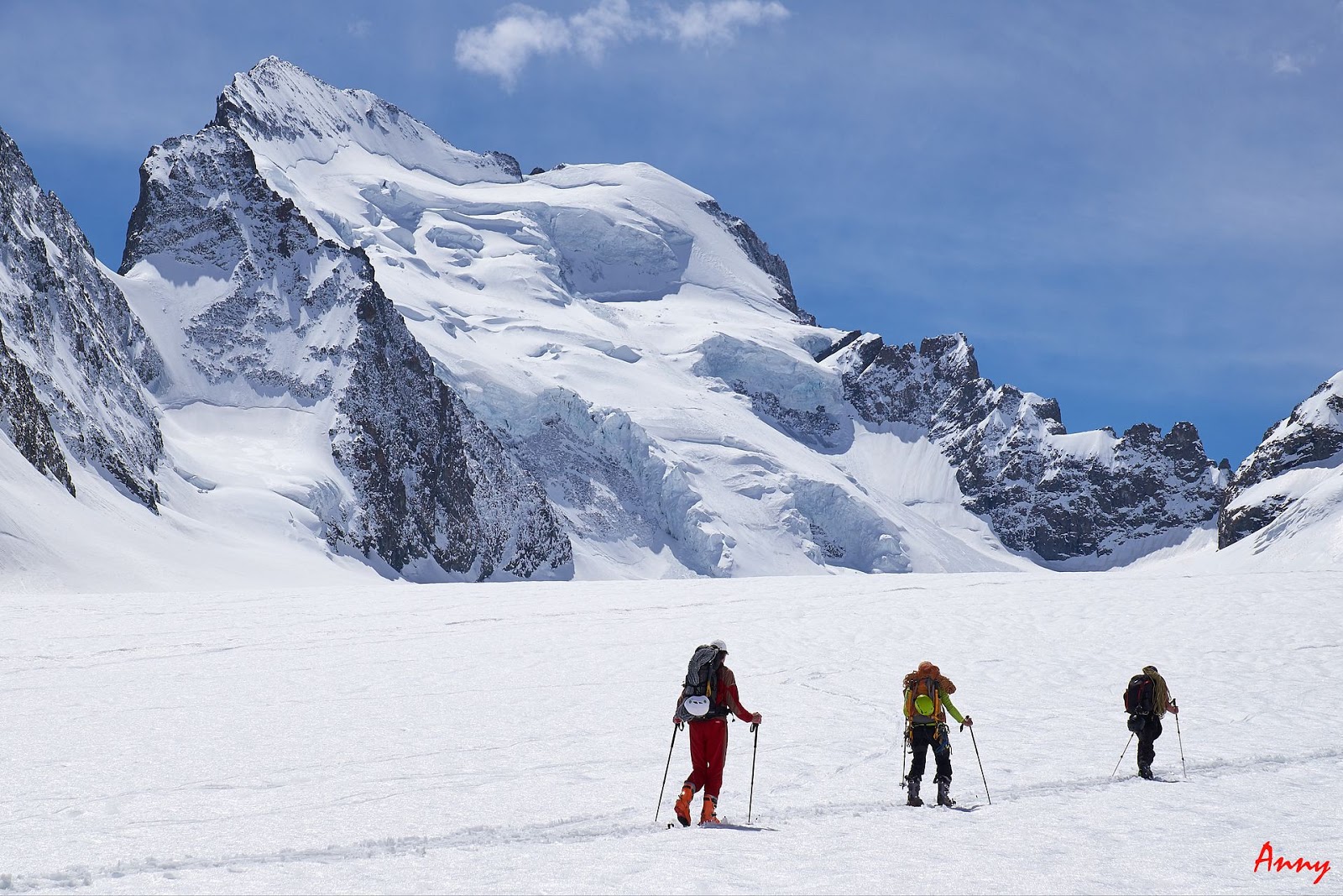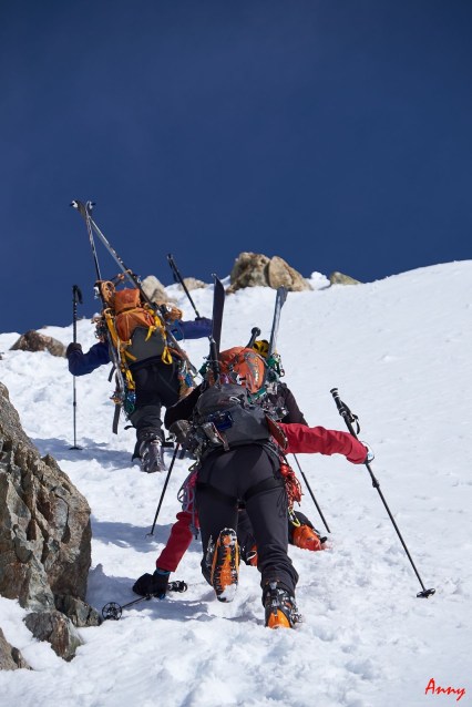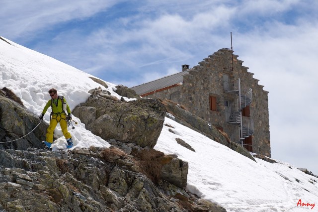 Prima faticosa giornata di avvicinamento al rifugio degli Ecrins con il gruppone del cai. Partiamo da Pre de Madame Carle per poi raggiungere, prima a piedi, poi con gli sci il rifugio Du Glacier Blanc e infine, attraversando il lungo ghiacciaio omonimo arriviamo ai piedi della base rocciosa dove sorge il nostro rifugio. Un ultimo sforzo su pendio valangato e dopo 1300 dolori metri di dislivello siamo finalmente con i piedi sotto al tavolo.