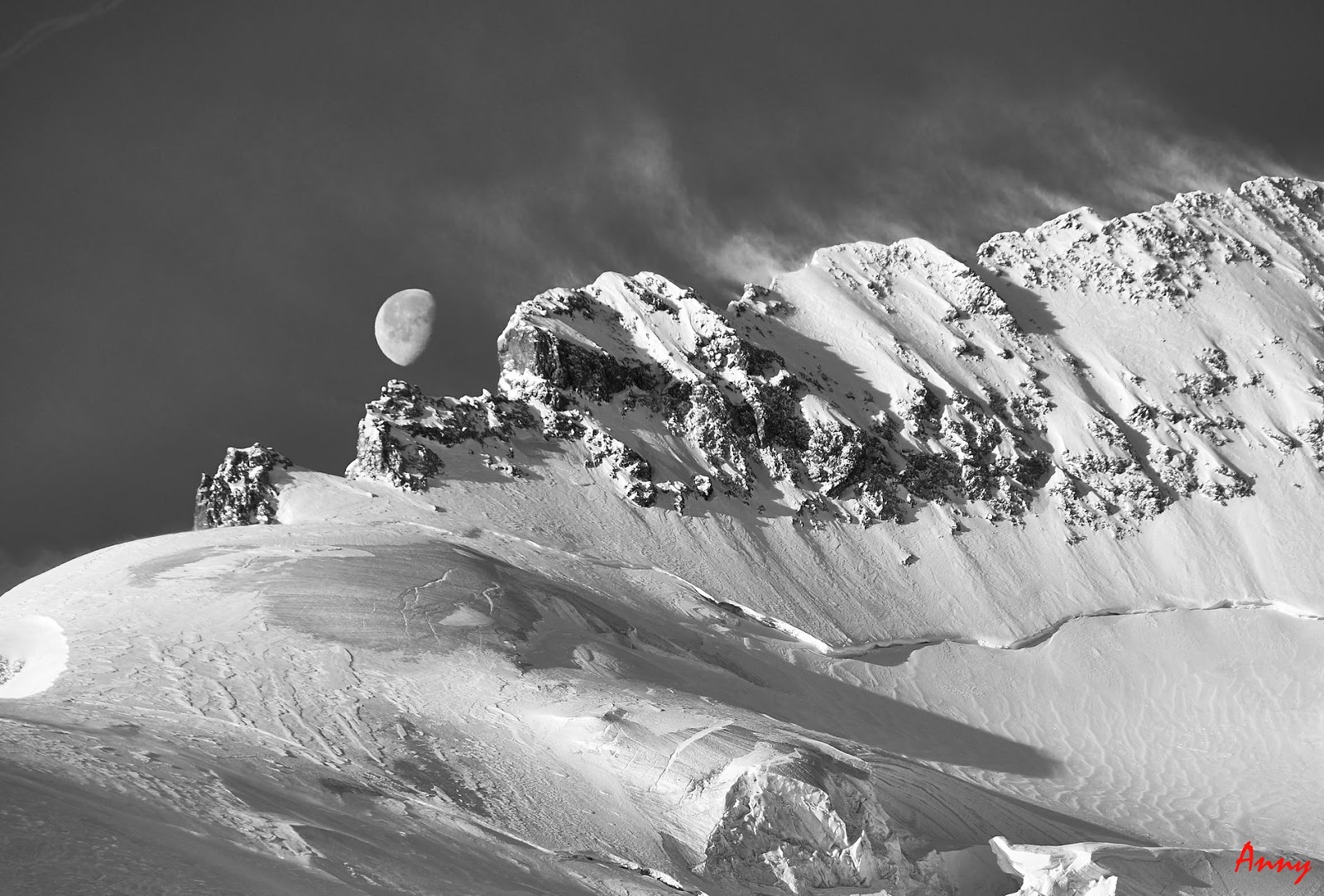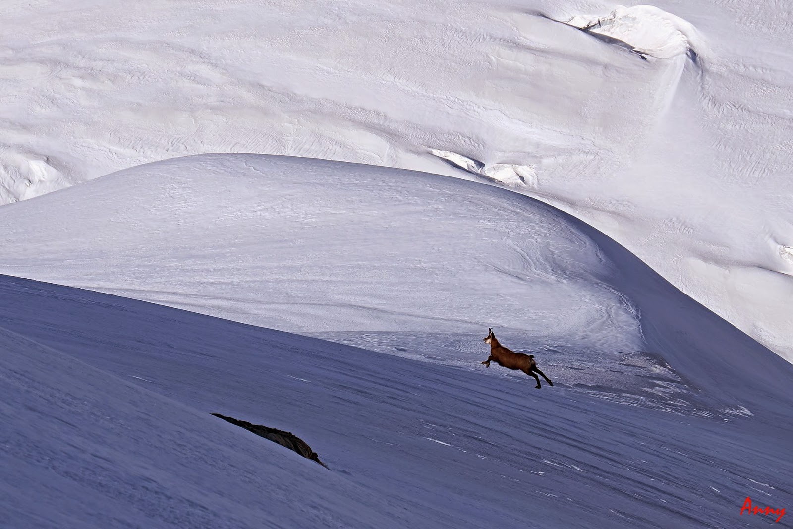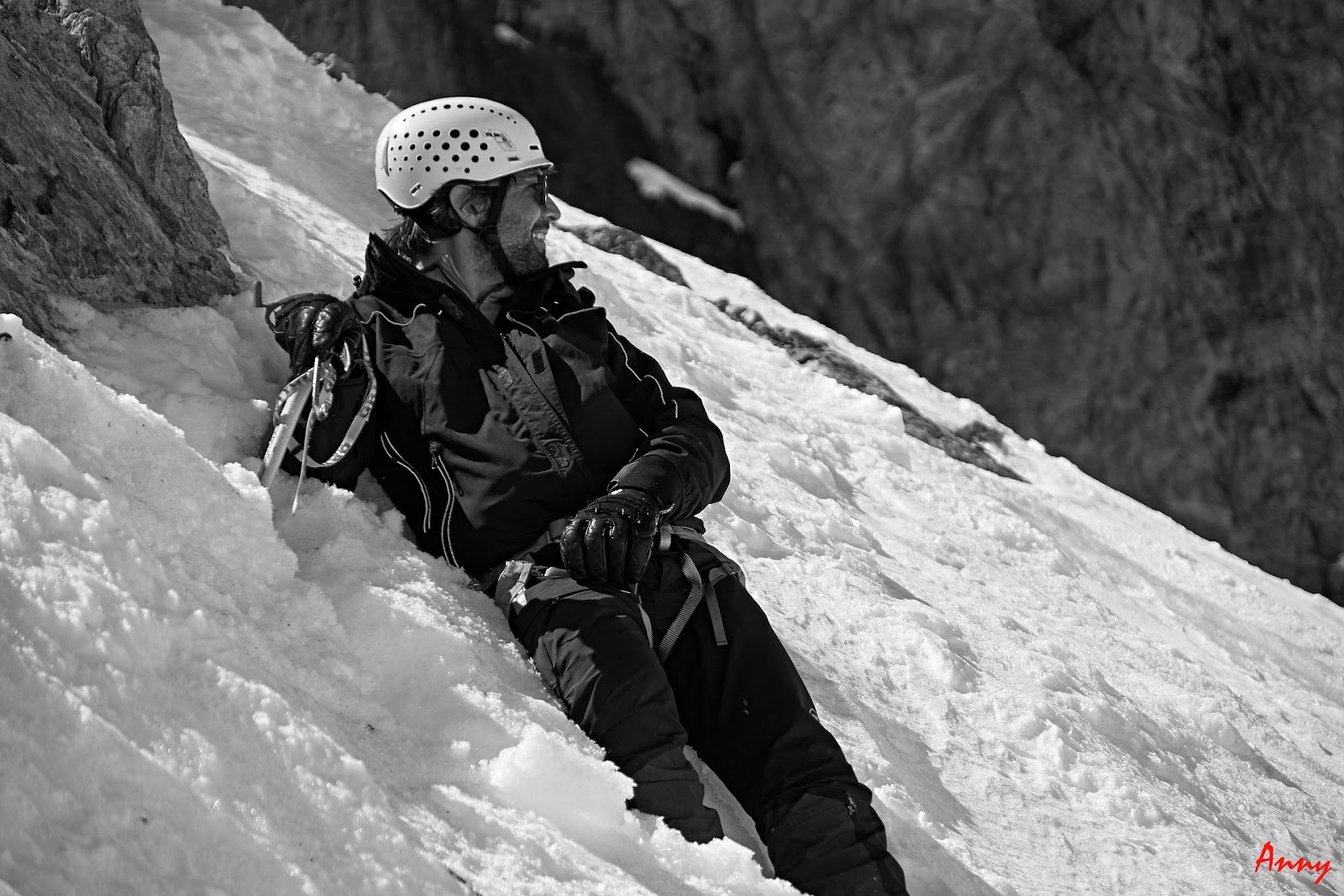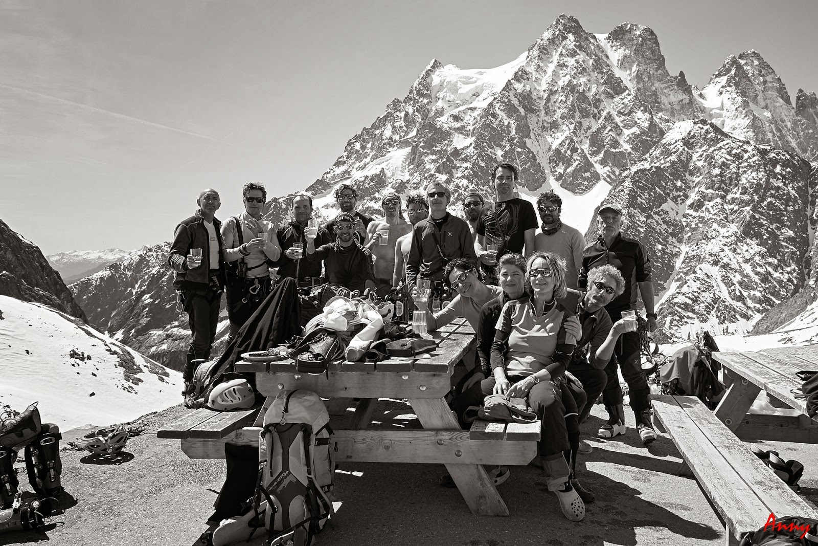 Seppur diretti verso la Dome de Neige, una volta raggiunto il pendio iniziale, il gruppo decide saggiamente di ripiegare su una gita più sicura. Le nevicate del giorno precedente hanno creato grossi lastroni da non sottovalutare. Ci dirigiamo quindi alla bella Pointe Xavier Blanc. I pendii sono tutti perfettamente innevati e ci pregustiamo già in salita la guduriosa powder. La neve non ci delude come previsto e torniamo contentissimi alla base. Qui prove di cordata e discese in corda doppia concludono egregiamente una giornata stupenda.