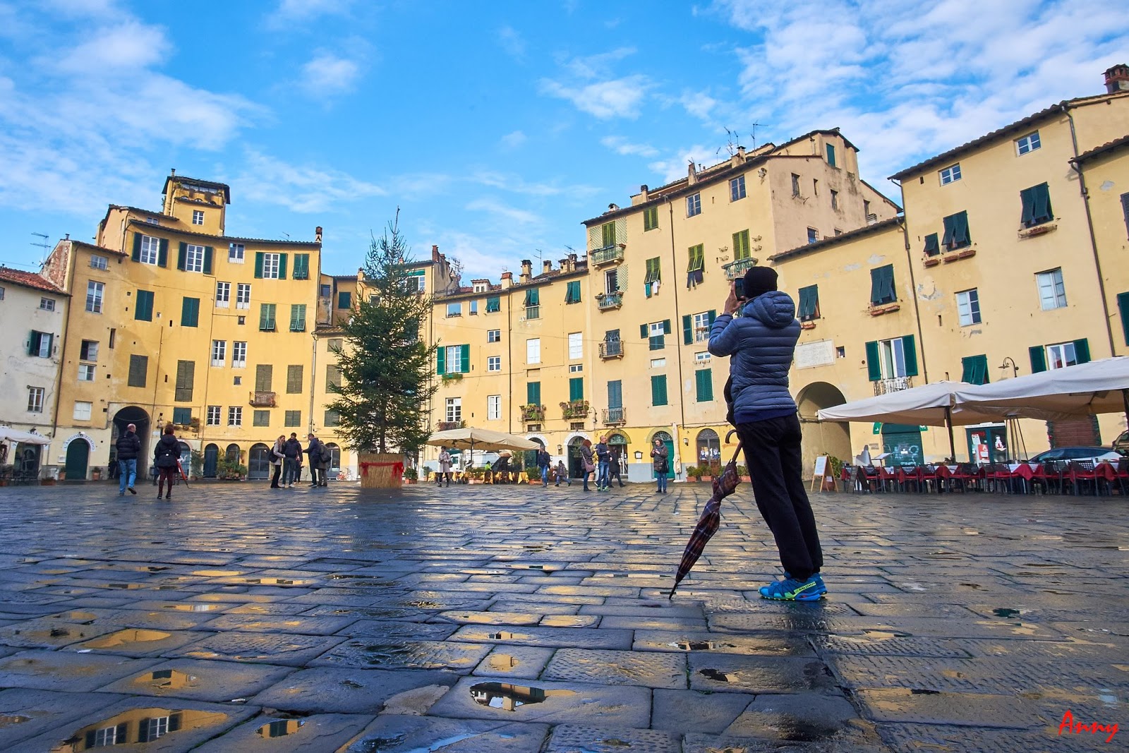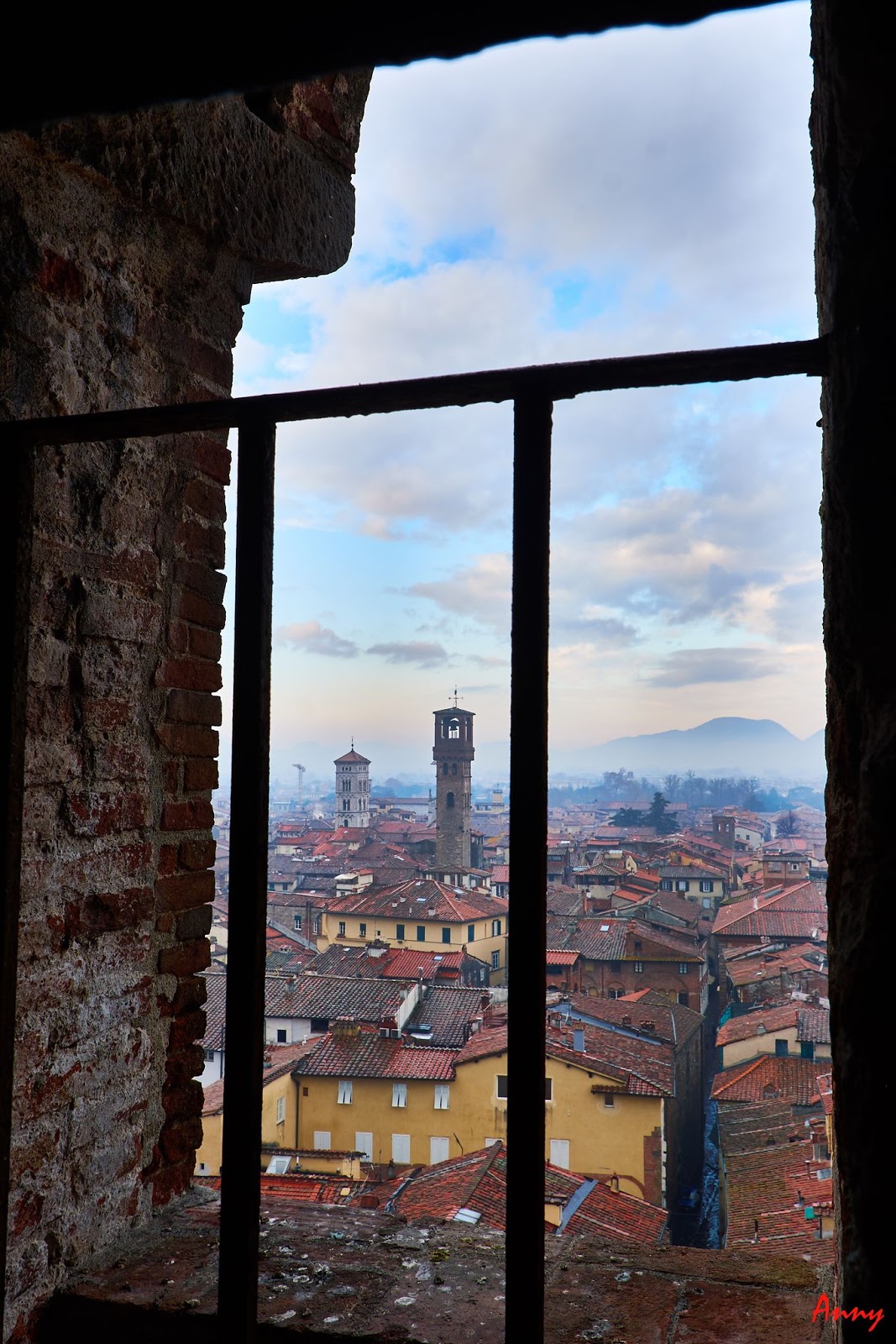 Bellissima, non meteorologicamente parlado però, giornata da turisti a Lucca. Una città strepitosa e per tanti aspetti unica. Chiesa di San Michele Piazza Anfiteatro Torre Guinigi Lucca dalla Torre Guinigi Ponte del Diavolo