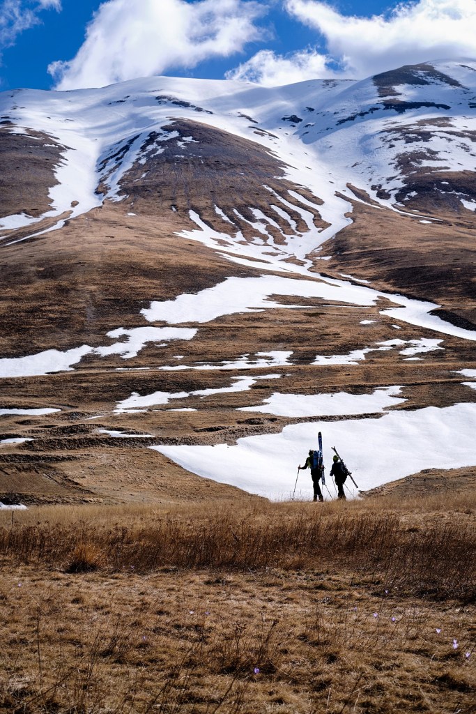 Come sempre non ci si sbaglia, l’appennino centrale è il paradiso dello scialpinismo. Ogni anno sento il bisogno di tornare e fino ad ora direi proprio di non essermi mai pentito. Questa volta è stato il turno del bellissimo canale della Virgola a picco sul paese di Castelluccio e della Sella dei Grilli dalla Val Maone nel gruppo del Gran Sasso.