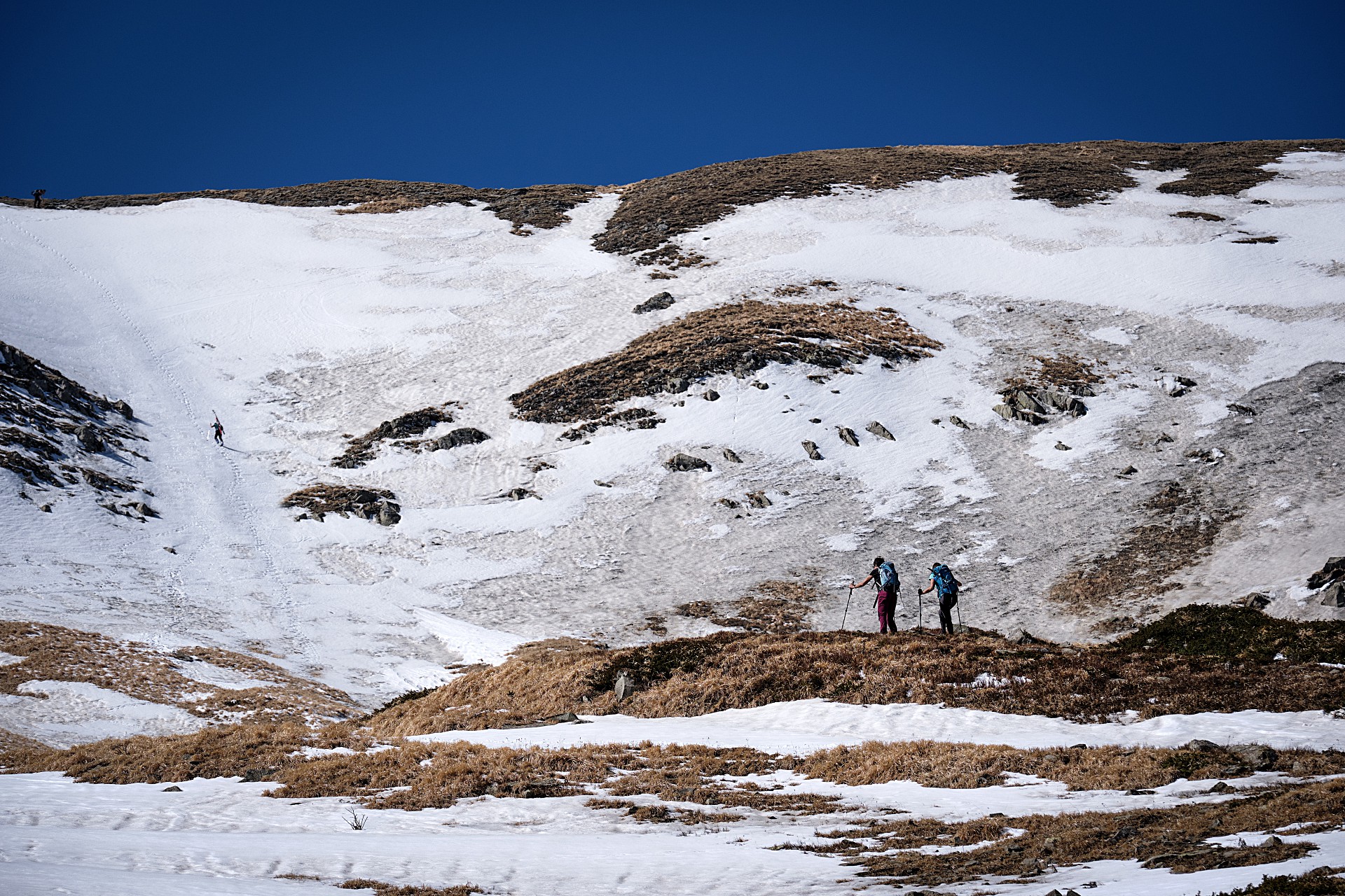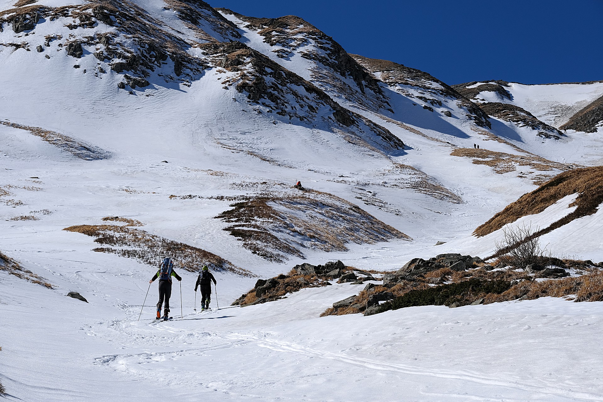 Per descrivere in maniera minimale il giro siamo partiti da Pian Vallese, risaliti per il Passone, ridiscesi al Bargetana, di nuovo risaliti sul crinale fino al Prado, discesi per la Clessidra, nuovamente risaliti al Cipolla per ridiscendere al Bargetana… prendo un attimo fiato… risaliti per l’ultima volta al Passone e ridiscesi per il Canale dell’Angelo! Cotti al punto giusto da una serie incomprensibile di su e giù, ma ampiamente soddisfatti, ci siamo goduti una giornata da incorniciare grazie anche ad un inaspettato incontro con una per nulla timida volpe.