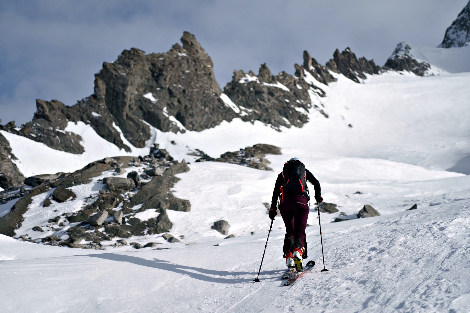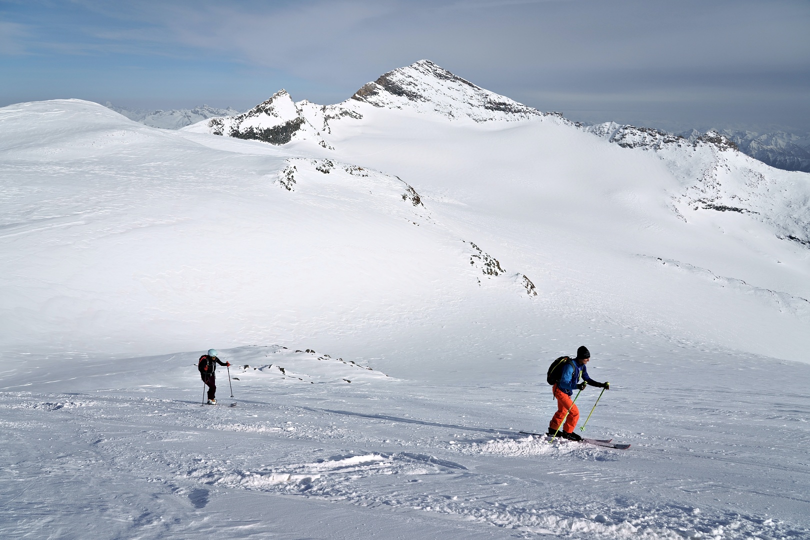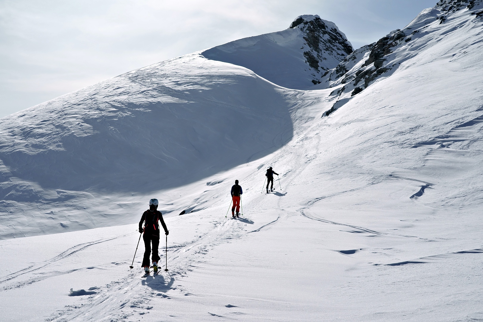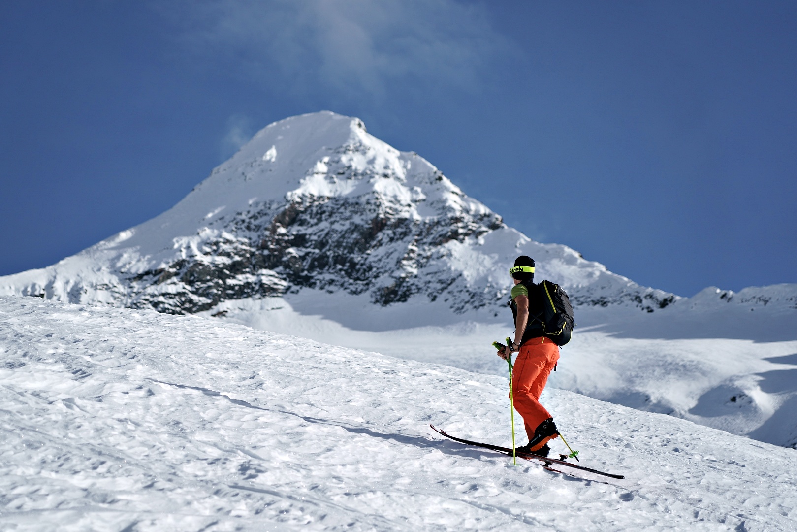 1700 metri di dislivello a giro è decisamente un eccesso per la mia quasi inesistenza preparazione scialpinistica. Ho comunque tenuto botta, più di testa che di fisico, e con gran soddisfazione alla fine ho raggiunto la vetta del Breithorn e la sella di punta del Rebbio. Mancava soltanto la cresta finale del Rebbio, ma direi che ci si possa tranquillamente accontentare.